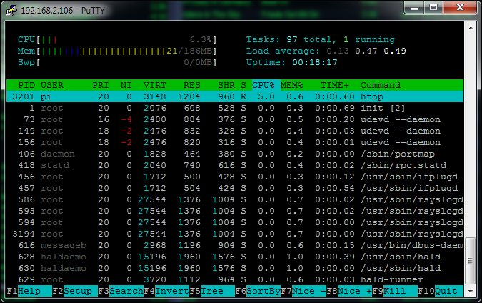 Danach steht die Console zur Verfügung. Auf jedenfall sollte die Kiste nicht gleich ins Internet gehängt werden. Da der Login vorgeben ist. pi ist der Benutzer und PW ist raspberry