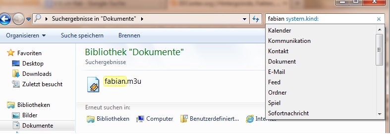 Es ist natürlich möglich die Suche zu Verknüpfen mit Fabian “und” Lieder sprich Operatoren.