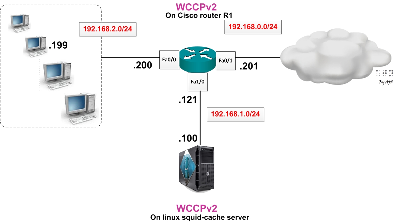 WCCP protocol can be much more interesting than the two commands needed for the CCIE exam. In this lab we will deploy a basic end-to-end solution using IOS 15.2S and the well known open-source solution Squid v3.1 as the content engine.