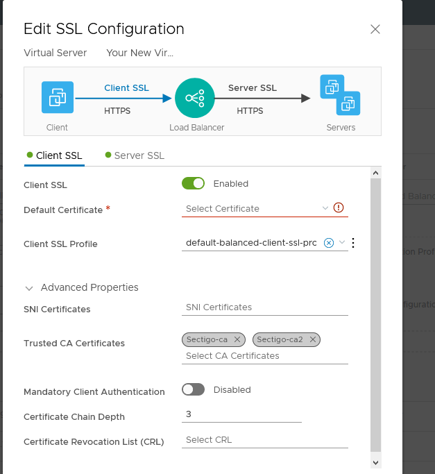 After importing the certificates you can assign this to your Virtual Servers HTTP 7 rule.